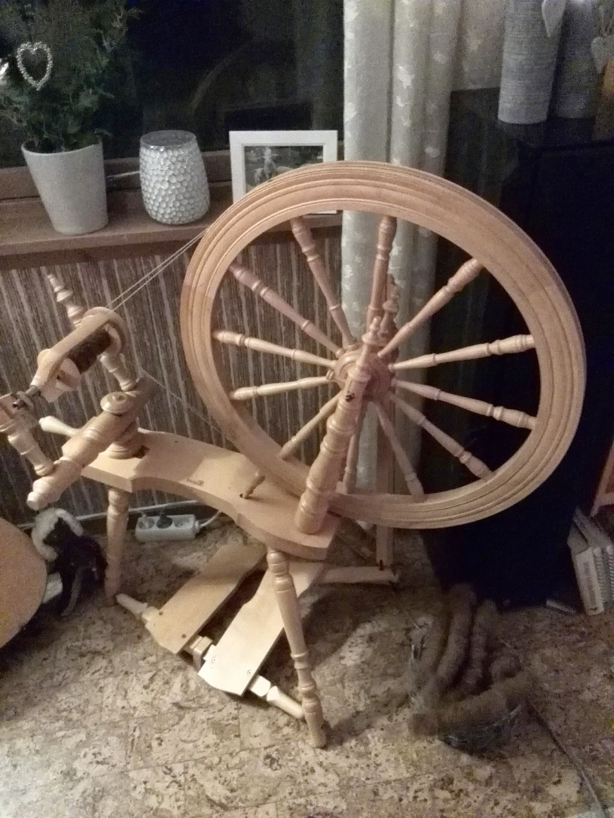 Min kjære Kromski Symphony, som jeg, etter nøye overveiinger, kjøpte av penger jeg fikk av min morfar, etter at han solgte traktoren. Han syntes det var et godt valg, og jeg har ikke angret en dag! Morfar døde våren 2013. Før dette, samme våren, lærte jeg meg å spinne. Han var vel den som hadde mest greie på spinning av mine familiemedlemmer. I starten, da jeg plagdes som verst, sa han: "Du må gi ulla til rokken", og vips, så klarte jeg jo å lage garn! Den setninga sitter enda som en del av det som fikk meg i gang.